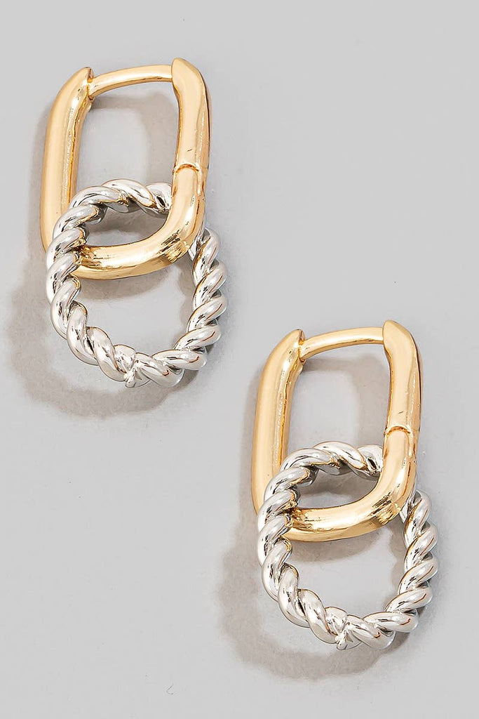 Braided Hoop Charm Rectangle Hinge Hoop Earrings