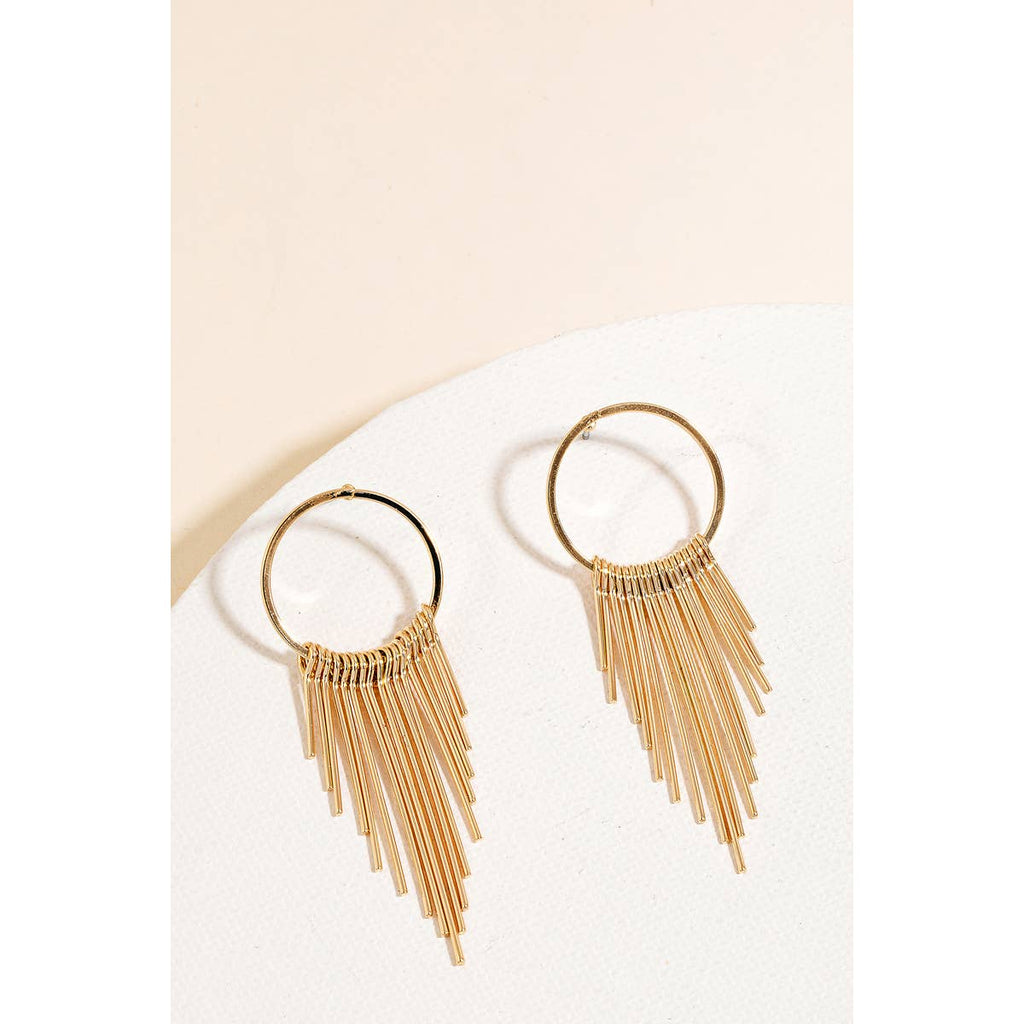 Dainty Metallic Bar Fringe Hoop Stud Earrings