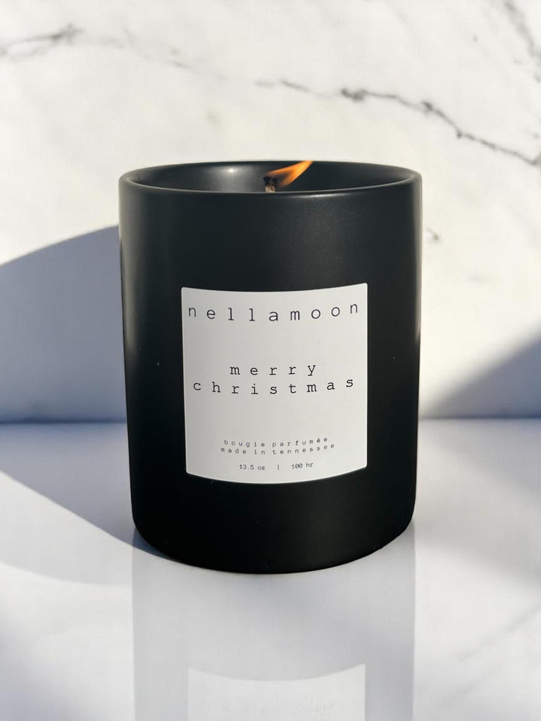 merry christmas boyfriend candle: holiday pine, fir, orange spice, clove, vetiver + cinnamon