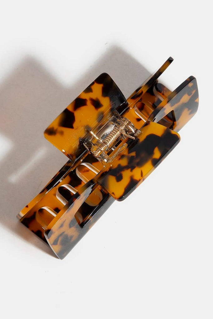 This hair claw introduces a unique black and brown rectangle style. Savor the allure of detailed craftsmanship in this exquisite hair claw. 100% PLASTIC