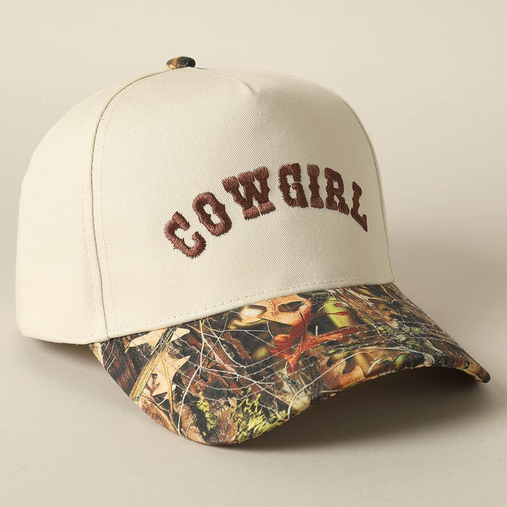 COWGIRL Lettering Embroidery Camo Two-Tone Cap