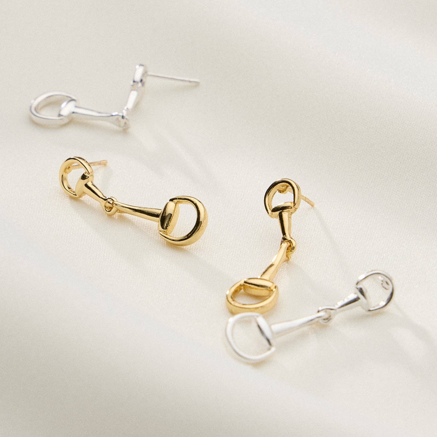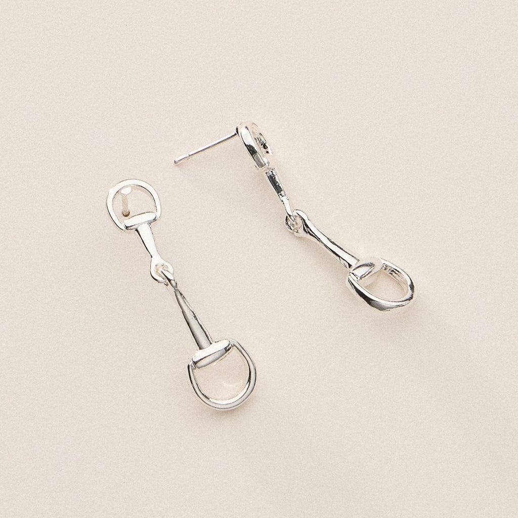 Inspired by equestrian elegance, these 18K gold dipped bit link drop earrings are a sophisticated blend of classic form and modern shine. Featuring a sleek, elongated design with horse bit-style detailing, they move gracefully and add a chic edge to any outfit. Available in gold and silver finishes, they’re perfect for polished looks with a touch of personality.