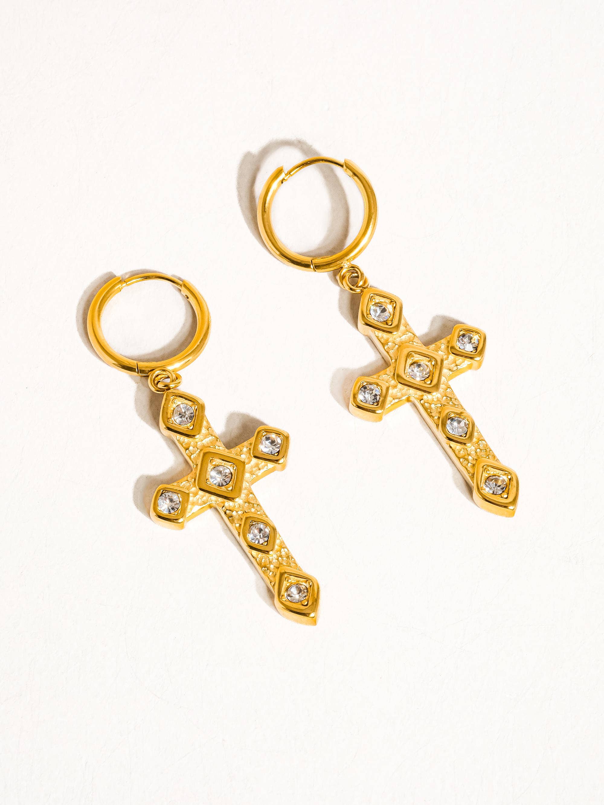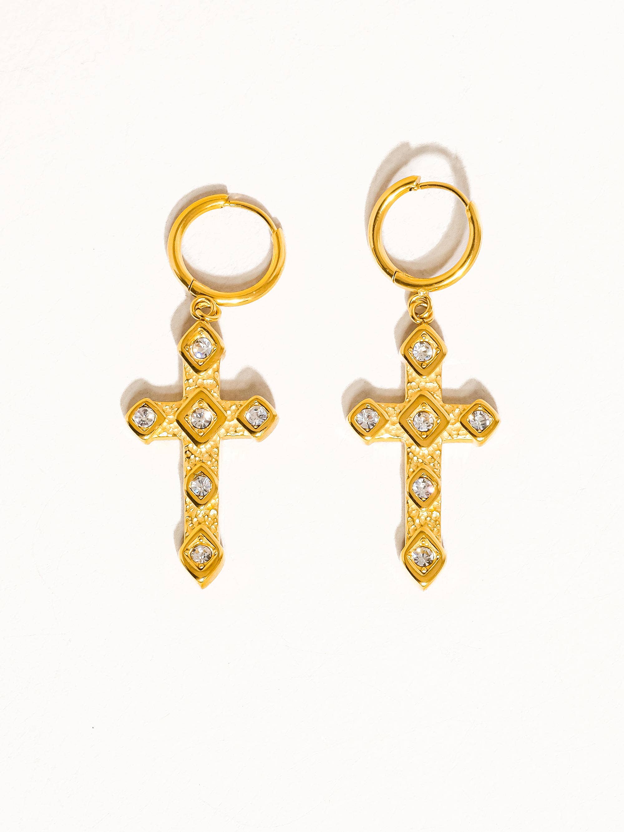 Miriam 18K Non-Tarnish CZ Cross Earring